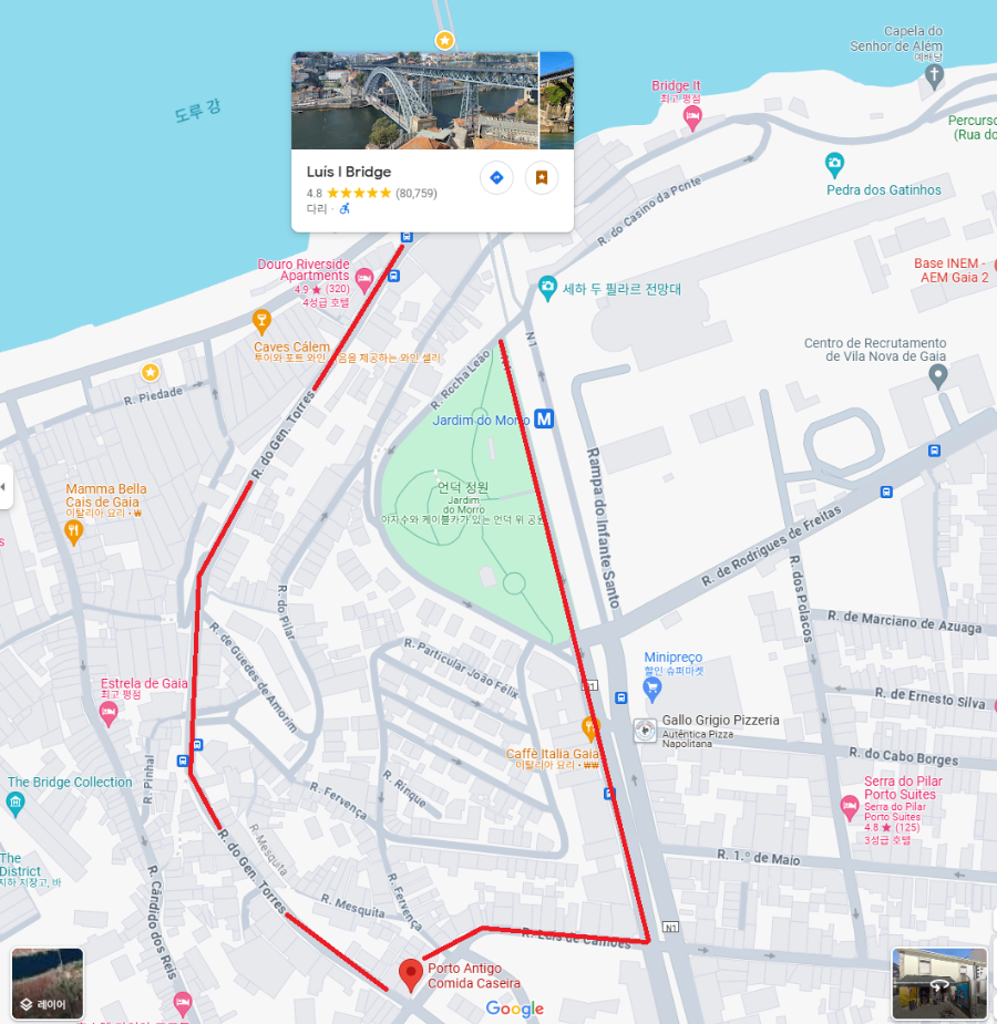 찾아가는 법은 쉬워요. 튼튼한 다리만 있다면. 루이스 브리지에서 어렵지 않게 찾아갈 수 있어요. 위 사진 참조해서 두 가지 방향으로 갈 수 있는데요 지도에는 표현되어 있지 않지만 꽤 높은 곳으로 올라가야 한답니다. 저희는 가게 안쪽에 자리를 잡았습니다. 생각보다 외부의 강한 태양이 아래에 보이는 검정 테라스로는 가려지지 않았기 때문이죠.ㅎㅎ
